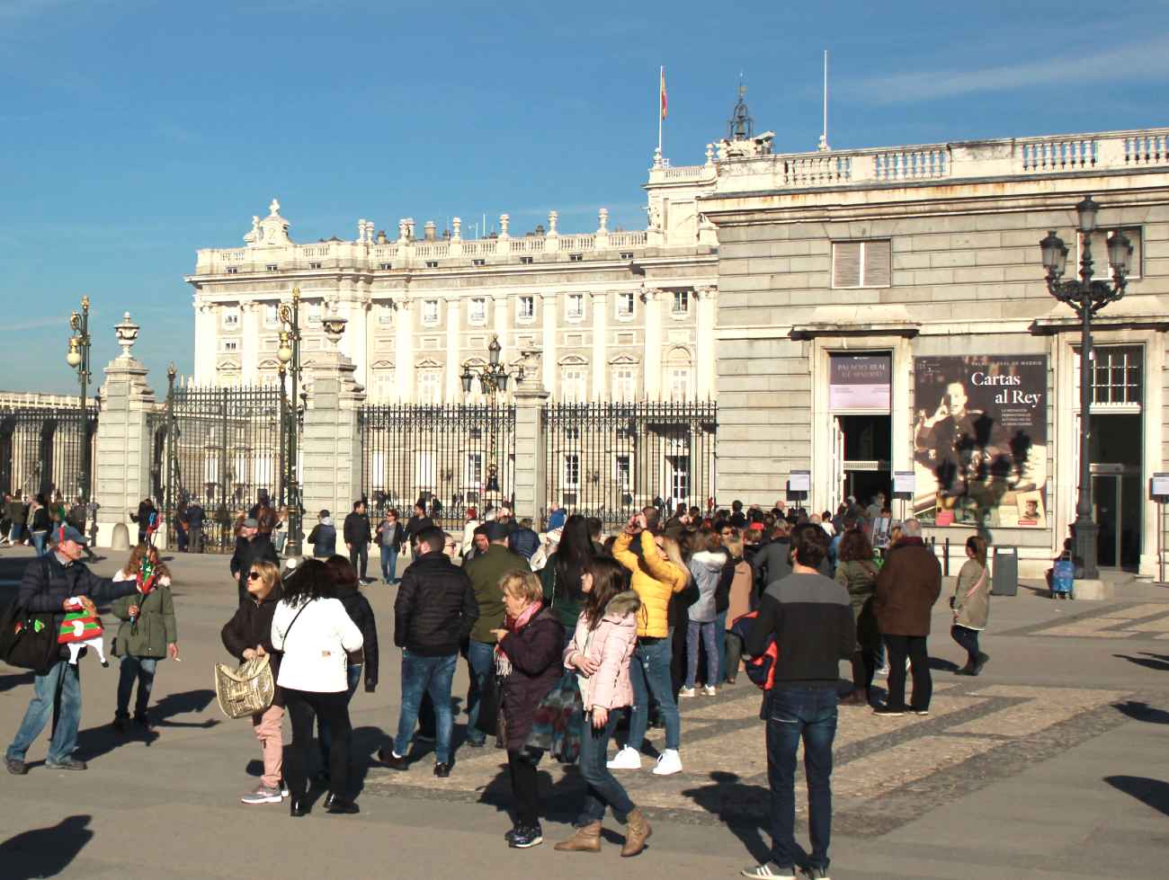 Wciąż używany przez hiszpańskiego króla w czasie oficjalnych wydarzeń, pałac królewski można zwiedzać i podziwiać Salony Królewskie, a w nich kolekcje sztuki, w tym także współczesnej, kolekcję instrumentów muzycznych, etc. W czasie wizyty można także zajrzeć do kuchni królewskich i zbrojowni. W czasie niektórych uroczystości wizyty w Pałacu nie są możliwe. Warto zajrzeć na stronę internetową.