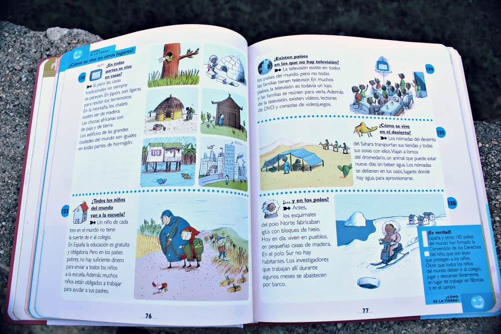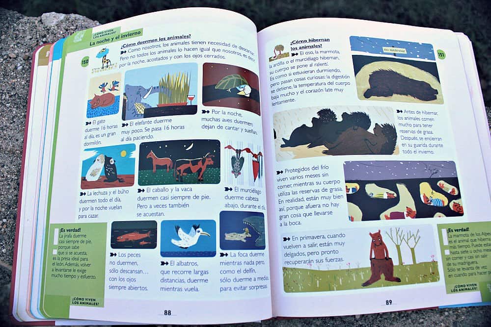Zawsze czytam dzieciom po polsku. Do snu czytam opowiadania i różne wesołe historie. Jednak na popołudniowe czytanie wybieram pozycje, dzięki którym poznajemy wspólnie świat. I tak mnóstwo u nas książek o morzach i oceanach, kosmosie, o ziemi i o zwierzętach. I jeszcze moje ulubione encyklopedie Larousse. Tam, gdzie nie ma zbyt wiele tekstu, przekładam na polski. Jeśli jest więcej, czytam po hiszpańsku. Bardzo lubimy nasze książki i ja i dzieci. Pomyślałam, że może i Wam się spodobają. Niektóre można dostać w Polsce, niektóre przez Amazon. Zaczynamy więc przegląd: