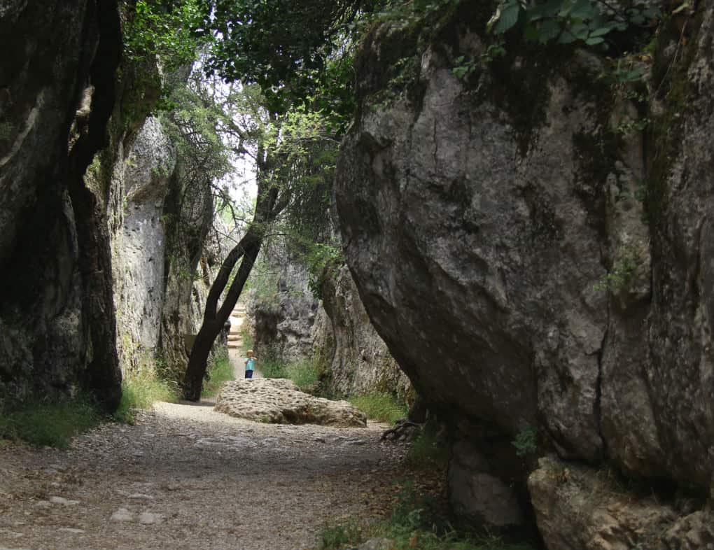 Teren jest w miarę przejezdny dla wózków – my pokonaliśmy trasę bliźniaczą spacerówką, na szczęście pustą, ponieważ dzieciaki ochoczo spacerowały i wspinały się na skałki. Po drodze jest wiele skalnych stopni oraz miejsc, gdzie szersze wózki trzeba przenieść.