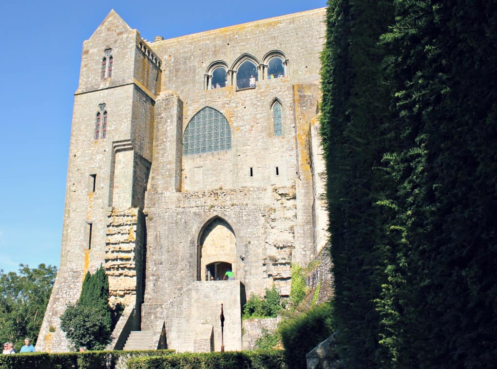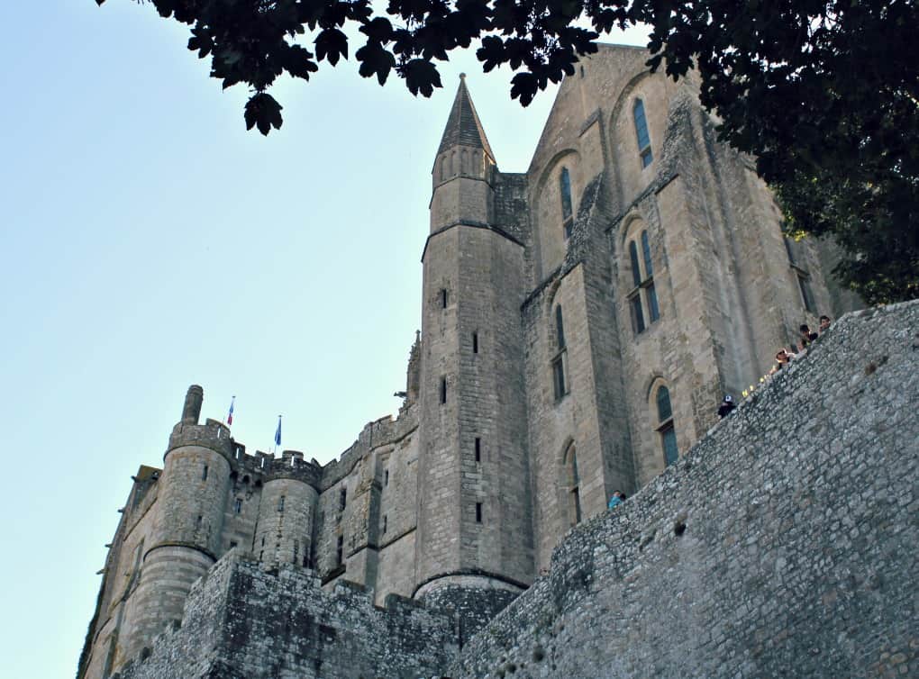 Biorąc sobie do serca przestrogi gospodarzy naszego B&B, udaliśmy się na obiad w miasteczku oddalonym około 30 kilometrów od celu. Dlatego też już po przyjeździe mogliśmy oddać się zwiedzaniu, szybkim krokiem mijając wszelkie jadłodajnie. Im wyżej wchodziliśmy, tym tłum był mniej dokuczliwy. Bilet kupiliśmy bez stania w kolejce, a w samym klasztorze, mimo że było sporo ludzi – w końcu to sierpień, szczyt sezonu urlopowego we Francji, można było znaleźć zakątki do spokojnej kontemplacji tego niezwykłego miejsca.