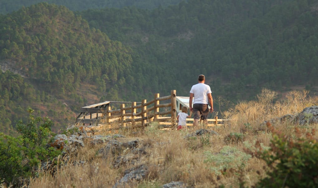 Gdy upał trochę już zelżał pojechaliśmy zobaczyć leżący 5km od miasteczka Riópar Viejo. Położony na wzgórzu, dziś to kilka kamiennych domostw przerobionych na domy i apartamenty na wynajem, ruiny fortecy z czasów arabskich, które później stały się cmentarzem i odrestaurowany kościół z XVw. Mieszkańcy Riópar Viejo opuścili miejscowość, gdy w dzisiejszym Riópar uruchomiono fabryki brązu w 1772r. To wzgórze widmo, pozbawione ruchu samochodów, z łagodnie wspinającymi się ścieżkami jest idealnym miejscem na spacer z dwulatkiem. Ze wszystkich stron rozciągają się przepiękne widoki na okoliczne góry.